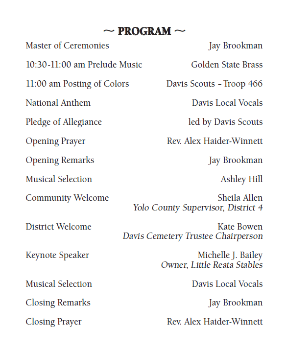 Musical performances by Golden State Brass, Davis Local Vocals, and Ashley Hill.